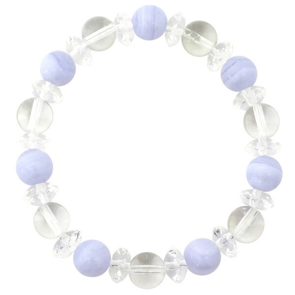 商品データ ・長さ 約16.0cm(レディースSサイズ) ・ブルーレースアゲート 約8mm 7玉 ・水晶 約8mm 7玉 ・平カット水晶(大) 14玉 ・シリコンゴム使用 (天然石アクセサリー/天然石ブレスレット/パワーストーン) 他にも様々な天然石をご用意しています。