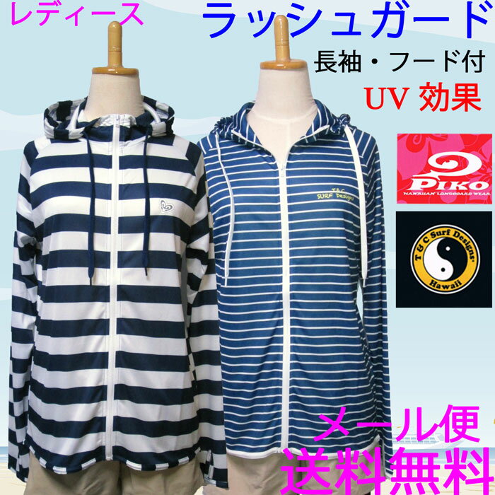 【メール便送料無料】PIKO T&C Surf ピコ ラッシュガード レディースタウカン Town&Country タウンアンドカントリー UVカット パーカー ラッシュパーカー 水着 パーカー スリム ボーダー 柄 長袖 フード付 ジップ 日焼け対策 紫外線対策 サイズ 指穴 海 プール アウトドア