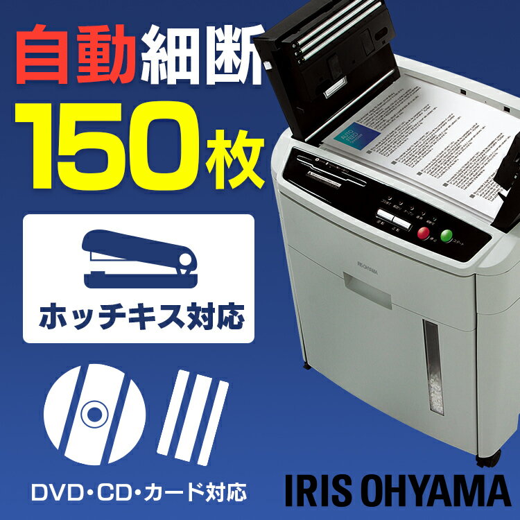 10日20時〜3000円OFFクーポン有♪ 電動シュレッダー AFS150C-H オートフィード シュレッダー 業務用 会社 アイリスオーヤマ 大容量 キャスター付き 安心 安全 細断 人気 オフィス CD DVD ホッチキス針 オートフィーダー クロスカット グレー 自動裁断 静音