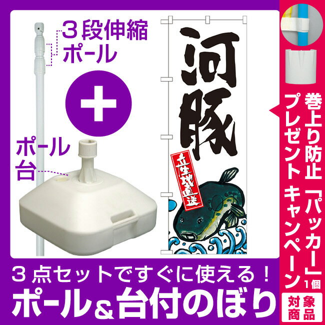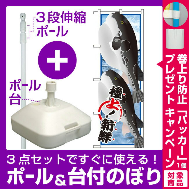 【3点セット】のぼりポール(竿)と立て台(16L)付ですぐに使えるのぼり旗 河豚 産地直送 白 (SNB-2294) [プレゼント付](寿司・海鮮/ふぐ料理)
