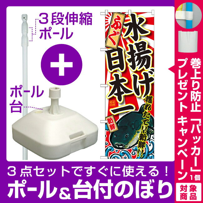 【3点セット】のぼりポール(竿)と立て台(16L)付ですぐに使えるのぼり旗 ふぐ 水揚げ日本一 (SNB-2318) [プレゼント付](寿司・海鮮/ふぐ料理)