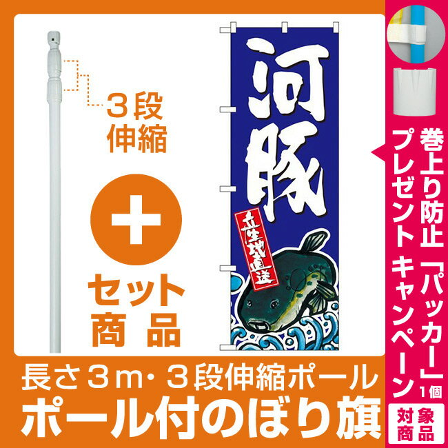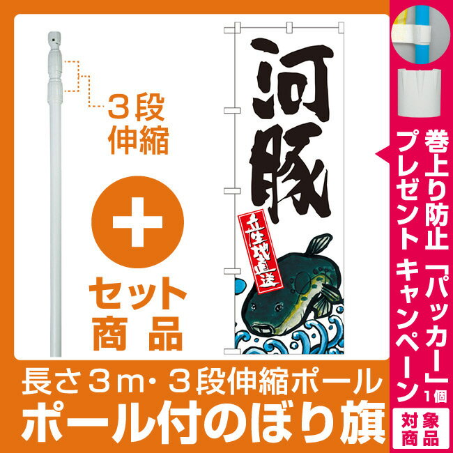 【セット商品】3m・3段伸縮のぼりポール(竿)付 のぼり旗 河豚 産地直送 白 (SNB-2294)(寿司・海鮮/ふぐ料理)