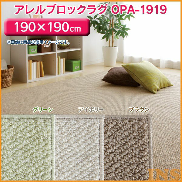 【送料無料】アイリスオーヤマ アレルブロックラグ 190×190cm グリーン・アイボリー・ブラウン OPA-1919
