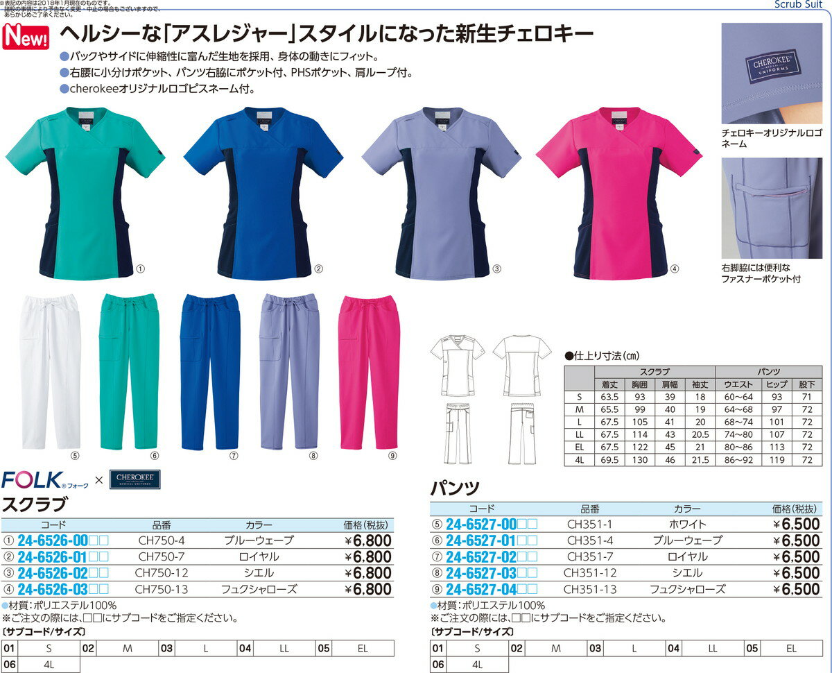 チェロキー パンツ CH351-1(ホワイト)品番 24-6527-00061入り 医療機器対象外 ウェア・ナースグッズ ナースウェア・メディカルウェア 定価\6500 JAN 4589989583675 ●定価¥6,500円(税別)●商品説明●ヘルシーな「アスレジャー」スタイルになった新生チェロキー●バックやサイドに伸縮性に富んだ生地を採用、身体の動きにフィット。